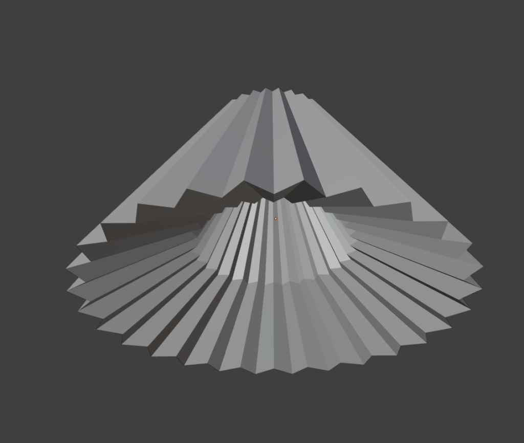 The movement reverses: the structure contracts, the folds settle back into place, and the lower cap curls inward to encase the bulb, echoing a seed returning into its pod.