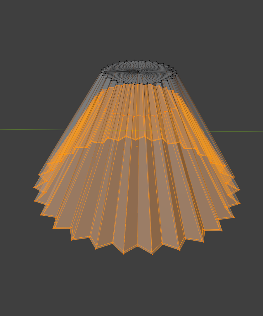 The lamp is built around two pleated caps that shift between openness and enclosure, echoing the blooming and folding cycles found in nature.