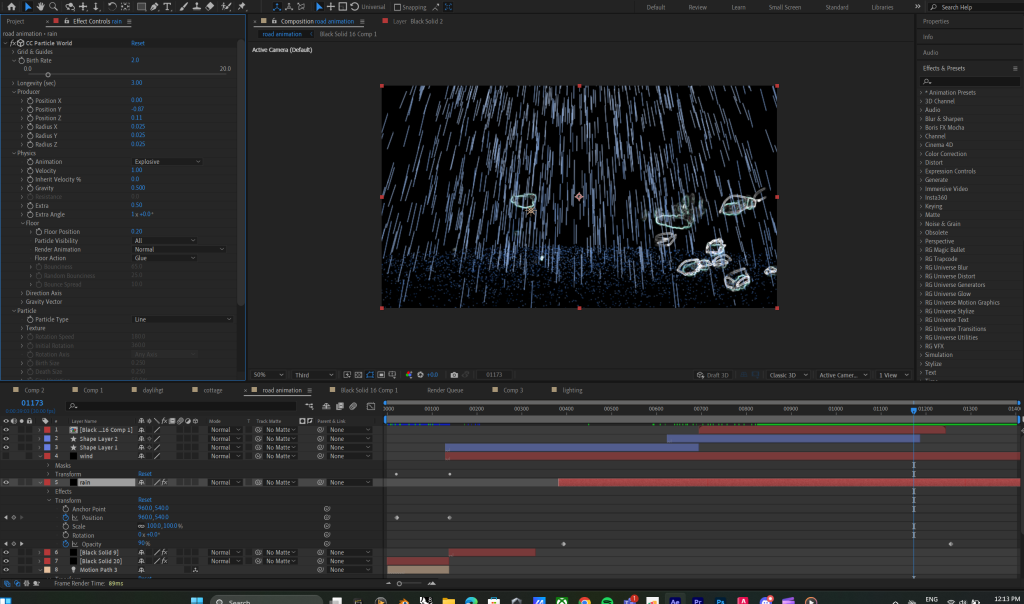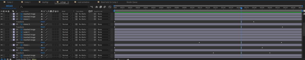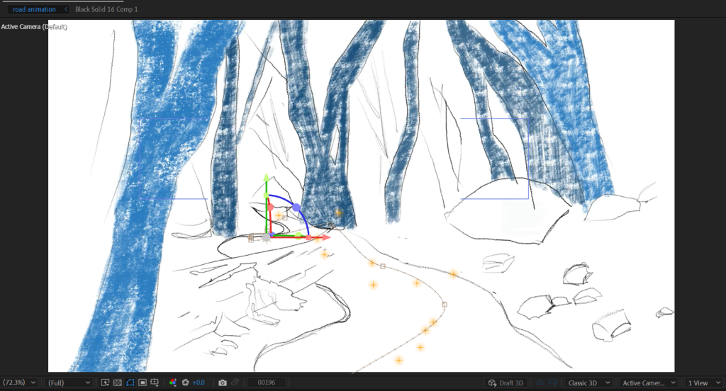 Throughout the narration, the forest transitions between day and night or shifts in mood from calm to fierce to reflect the story’s progression. To achieve this, I primarily used fade-in and fade-out effects, along with color inversion and edge detection, or adding rain to create smooth yet distinct transitions.